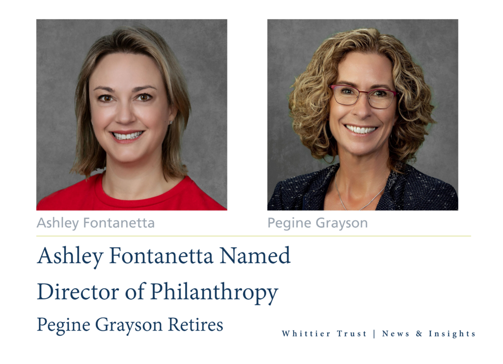 Whittier Trust Promotes Ashley Fontanetta to Director of Philanthropic Services and the Retirement of Pegine Grayson